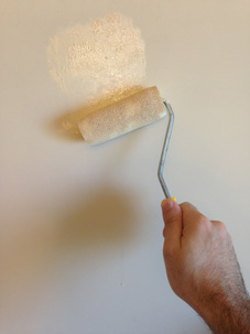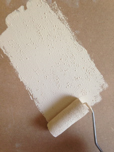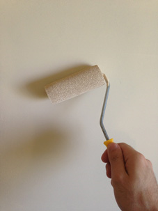 Валиком максимально гладко и равномерно нанести разбавленную водой (до 50%) декоративную краску MAG-CARMA. Время высыхания краски – не менее 4 – 6 часов.
