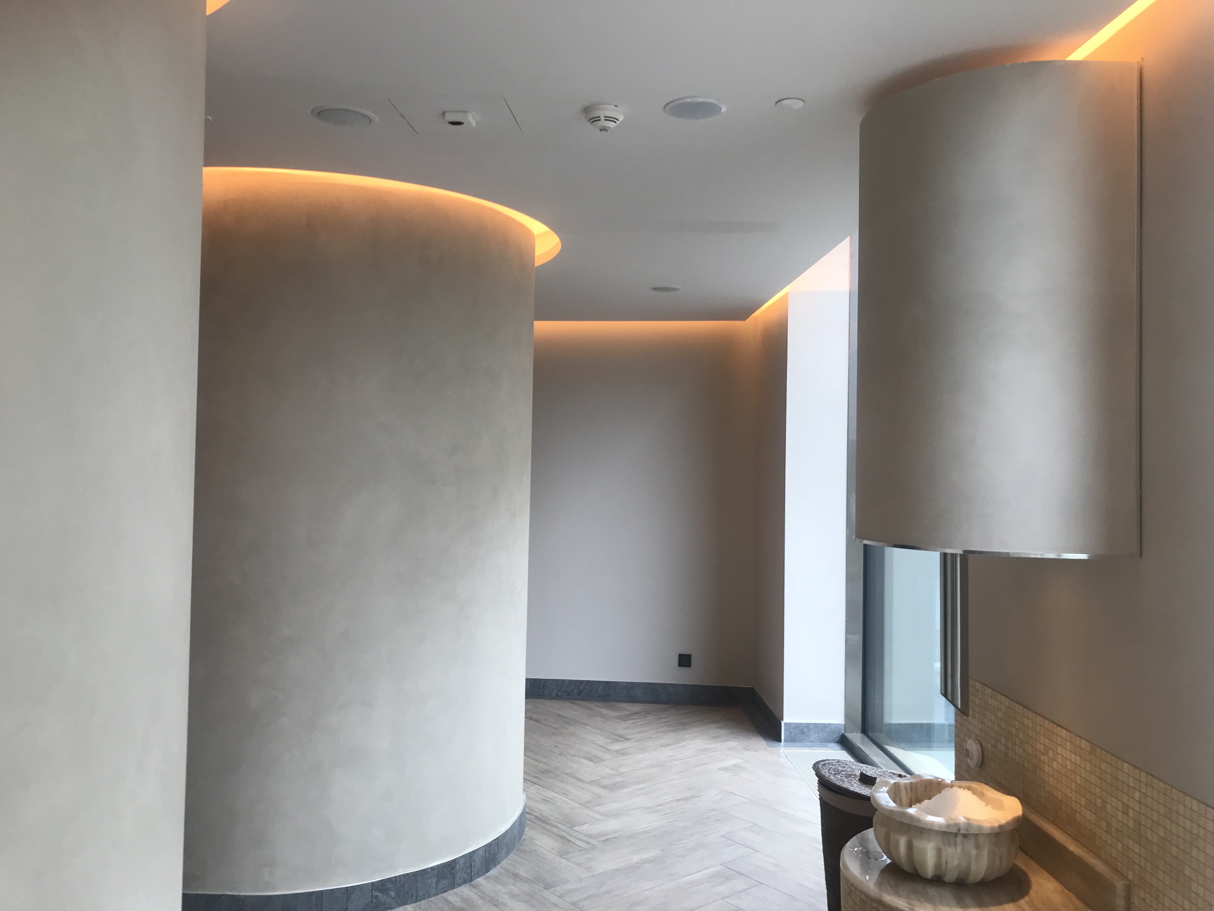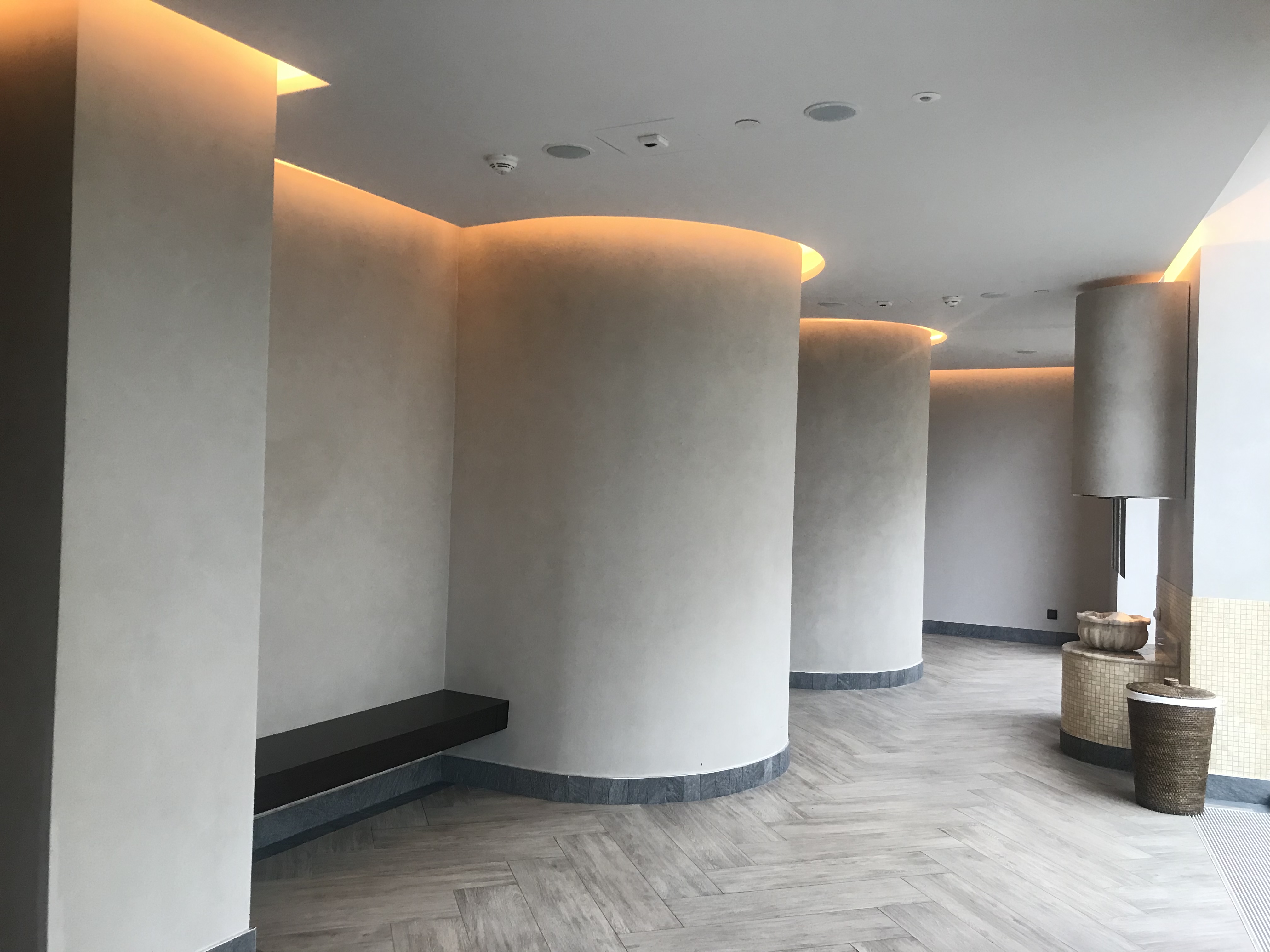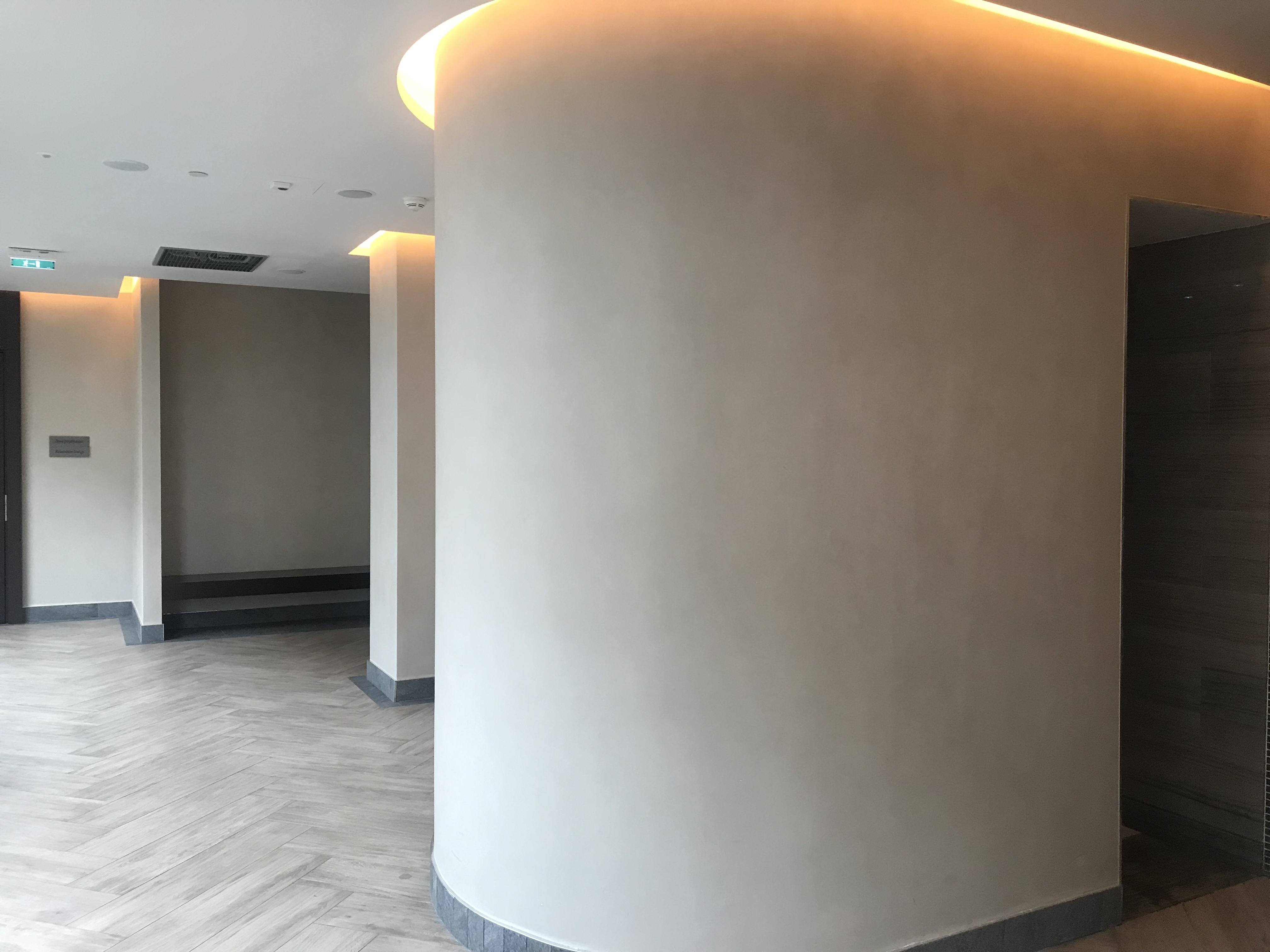 Декоративная краска MAG Carma - прекрасное сочетание матового эффекта с функциональностью. Для ОРАНЖ ФИТНЕС в ВТБ Арена Парк использовали наш популярный материал. Используя декоративную краску с эффектом матового шёлка в влажных помещениях рекомендуем подготовить фасадную влагостойкую шпаклевку.
